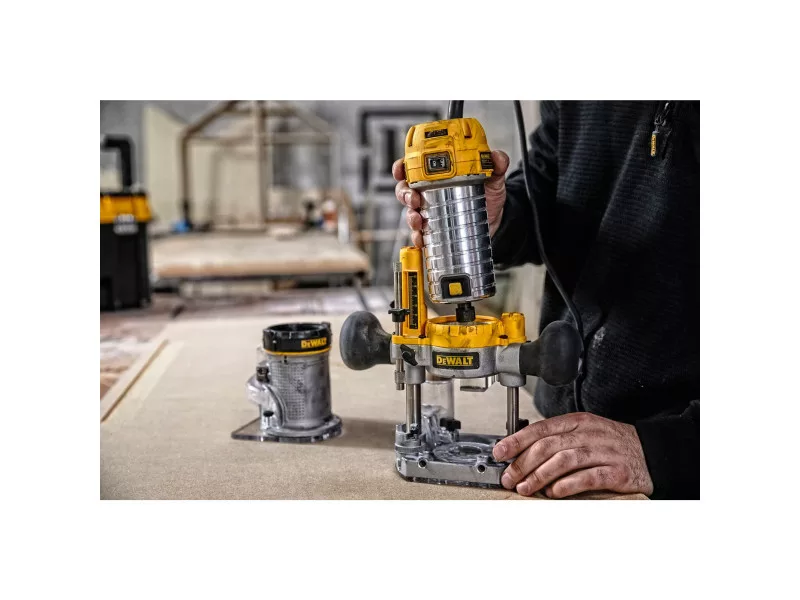 Kombinierte Fräsmaschine, bestehend aus einer D26203 Oberfräse (Fräsmotor mit Taucheinheit) und einem Umbausatz, der eine D262005 Kopiereinheit (separat erhältlich) enthält, die die Verwendung des Fräsmotors als Dickenhobelmaschine ermöglicht.