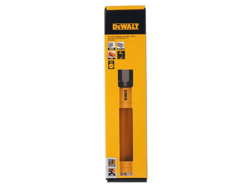 A DEWALT DCDW101-XJ gyémánt koronafúrószárral több időt tölthet a fúrással, és kevesebbet a cserékkel. A magas minőségű acélból készült, 450 mm-es henger tartósságot kölcsönös ennek a 82 mm-es fúrószárnak. Szabványos 1–1/4" csatlakozás a kompatibilitás érdekében. Turbó gyémántszegmensek a gyors, tiszta vágásokhoz. A 2,54 cm-es mélységjelzők pontosságot és ezáltal maximális hatékonyságot biztosítanak.