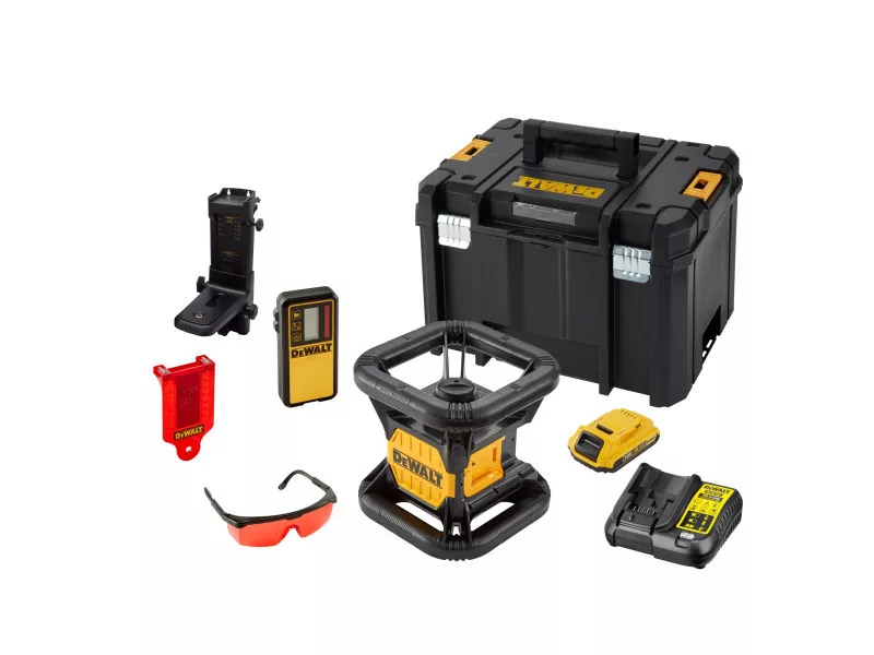 DEWALT Kabelloser selbstausrichtender Rotationslaser 18 V (rot) (1 x 2,0 Ah Akku + Ladegerät + TSTAK) DCE074D1R