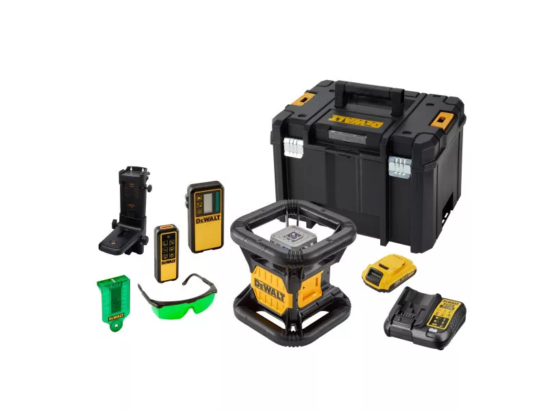 DEWALT Kabelloser selbstausrichtender Rotationslaser 18 V (grün) (1 x 2,0 Ah Akku + Ladegerät + TSTAK) DCE079D1G