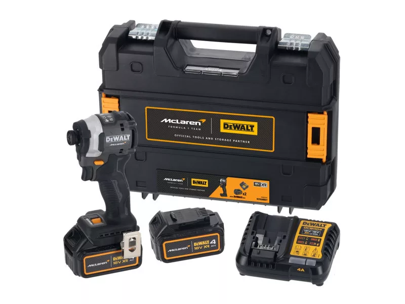 DEWALT/McLaren Akku-Schlagschrauber 18 V 208Nm 1/4" (2 x 4,0 Ah Akku + Ladegerät + TSTAK)