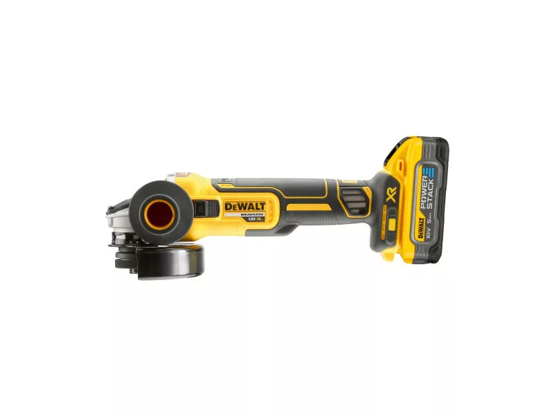 DEWALT Akku-Winkelschleifer 125 mm 18 V (2 x 5,0 Ah Power Stack Akku + Ladegerät + TSTAK)