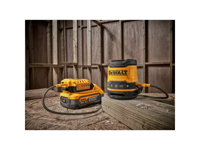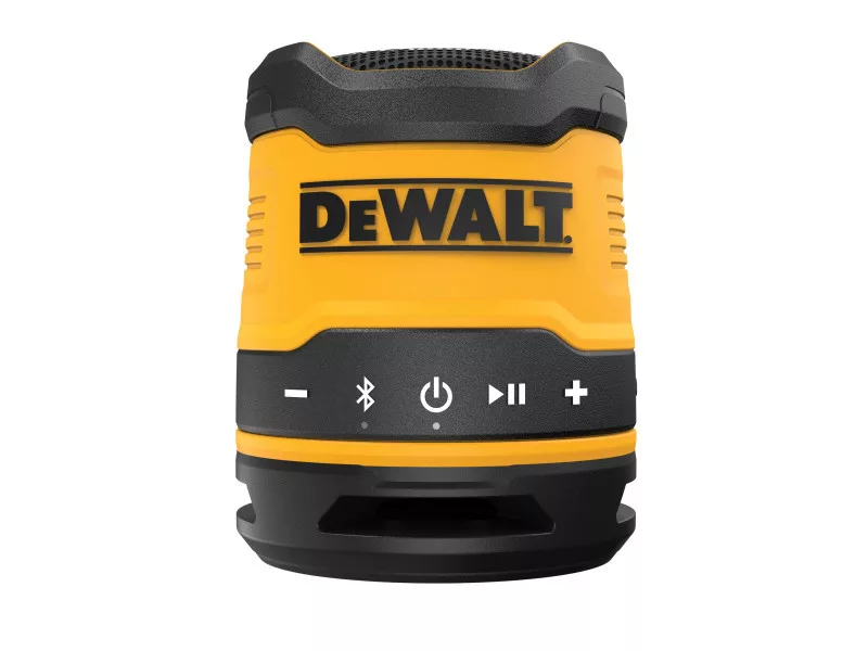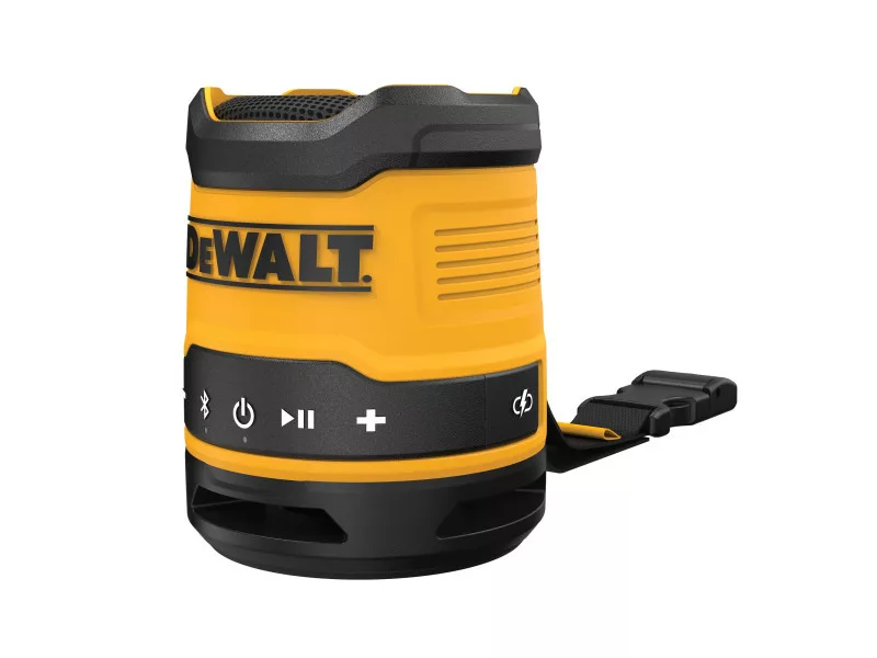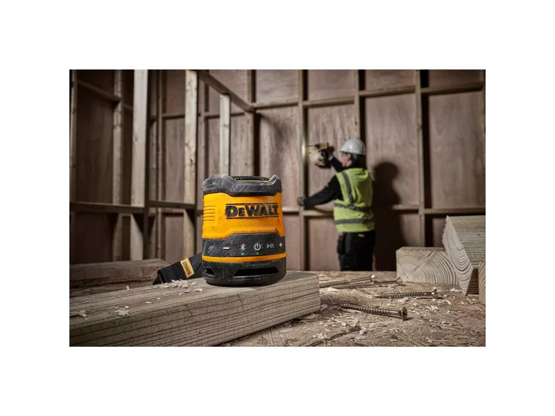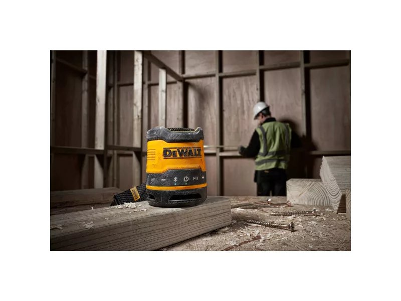 Erleben Sie bis zu 16 Stunden Laufzeit mit dem wiederaufladbaren DEWALT DCR008 Mini-Bluetooth-Lautsprecher. Dank seines robusten Gehäuses und der IP67-Einstufung für Staub- und Wasserschutz ist dieser massige Lautsprecher für den Einsatz auf der Baustelle bestens gerüstet. Der Tragegriff und der Clip ermöglichen einen bequemen Transport und eine einfache Lagerung.