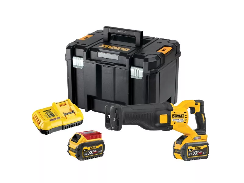 DEWALT Akku-Säbelsäge 18 V ohne Kohlebürste (2 x 6,0 Ah Akkus + Ladegerät) DCS389T2