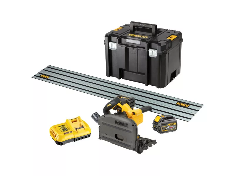 DEWALT Akku-Tauchkreissäge 54 V ohne Kohlebürste (2 x 6,0 Ah Akku + Ladegerät + Schiene) DCS520T2R