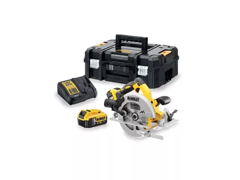 DEWALT Akkus körfűrész 18 V szénkefe nélküli 184 mm (2 x 5,0 Ah akku + töltő) DCS570P2