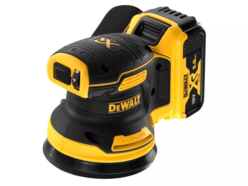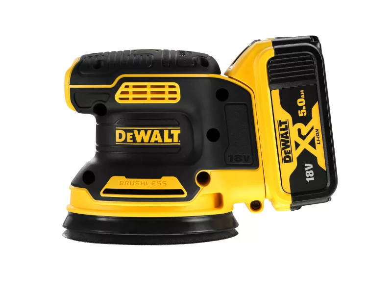 DEWALT Akkus excenter csiszoló 18 V szénkefe nélküli (2 x 5,0 Ah akku + töltő) DCW210P2