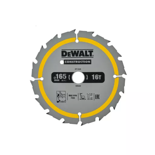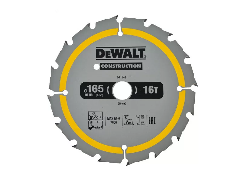 Az építőipari fűrészlapok alkalmasak első simítású alkalmazásokhoz, ahol a vágási minőség kevésbé fontos, és gyakran használnak újrafelhasznált faanyagot. Ezeknek a fűrészlapoknak a fogai úgy vannak kialakítva, hogy ellenálljanak a sérüléseknek, ha idegen tárgyakba, például beágyazódott szögekbe vagy betonba ütköznek. Általános felhasználásra 165 mm-es 16 fog.
