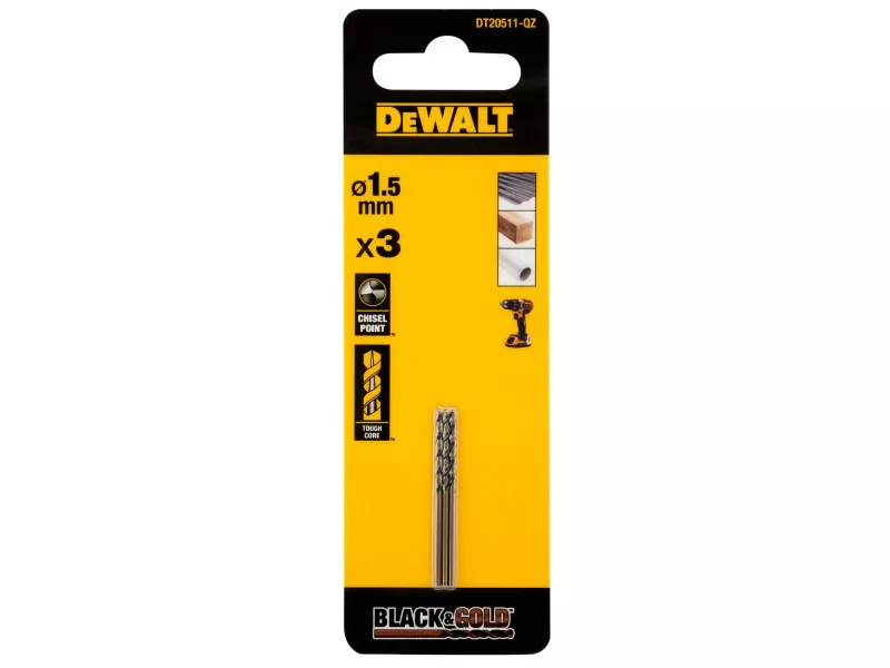 DEWALT BLACK & GOLD Spiralbohrer 1,5 x 40/18 mm HSS (3 Stück)