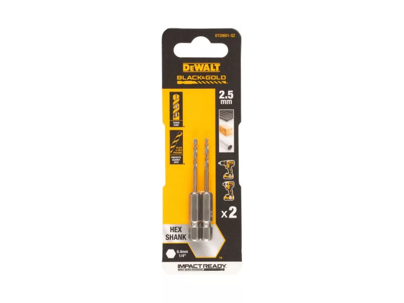 DEWALT BLACK & GOLD Spiralbohrer 2,5 x 60/15 mm HSS mit 1/4" HEX-Aufnahme (2 Stück)