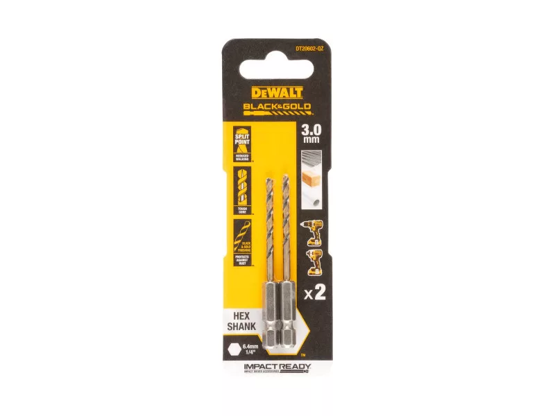 DEWALT BLACK & GOLD Spiralbohrer 3,0 x 75/26 mm HSS 1/4" HEX-Aufnahme (2 Stück)