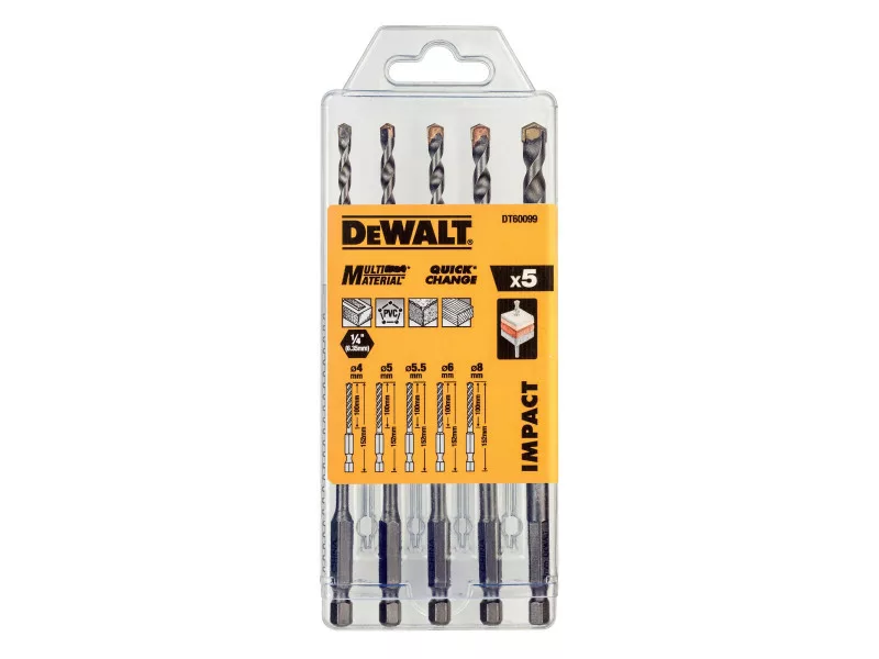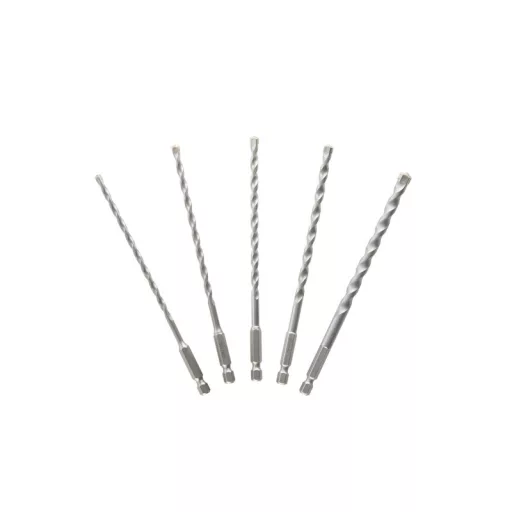 Die Impact Ready Mehrmaterial-Bohrer können in Schlagschraubern verwendet werden und eignen sich für Holz, Kunststoffe, Beton, Ziegel, leichte Baumaterialien, mehrlagige Materialien und Mauerwerk. 5-teiliges Bohrerset