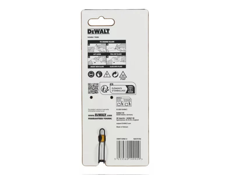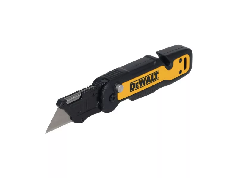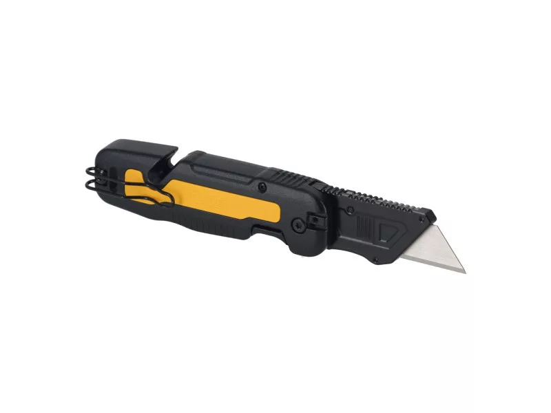Das DEWALT® Push and Flip faltbare Trapezmesser bietet eine breite Palette an Schneidanwendungen. Ergonomisch gestaltet, ist es auch bei schweren Arbeiten bequem zu tragen, das Messer kann mit einem einfachen Klick geöffnet werden. Ein Handgelenkschlag ermöglicht schnellen Zugriff auf die Klinge. Das schnell gleitende und klickende Klingenwechselsystem hält die Klinge fest und hilft, ein versehentliches Lösen der Klinge zu verhindern. Das Messer, das für Langlebigkeit mit einem Metallgriff entworfen wurde, bietet hohe Leistung für eine Vielzahl anspruchsvoller Aufgaben und kann sicher mit dem umkehrbaren Taschenclip und dem integrierten Seilloch befestigt werden, ideal für Arbeiten in der Höhe.