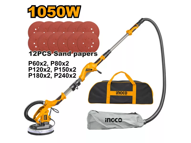 Der DWS10501 Ingco Wand- und Deckenschleifer ist ein qualitativ hochwertiges Elektrowerkzeug, das speziell für das Trockenschleifen von gipshaltigen Oberflächen, Decken und mit Spachtelmasse beschichteten Wänden, sowohl im Innen- als auch im Außenbereich, entwickelt wurde. Das Gerät ist ideal für das Entfernen von Farbschichten, Klebstoffresten und losem Putz. Es hat folgende Eigenschaften: