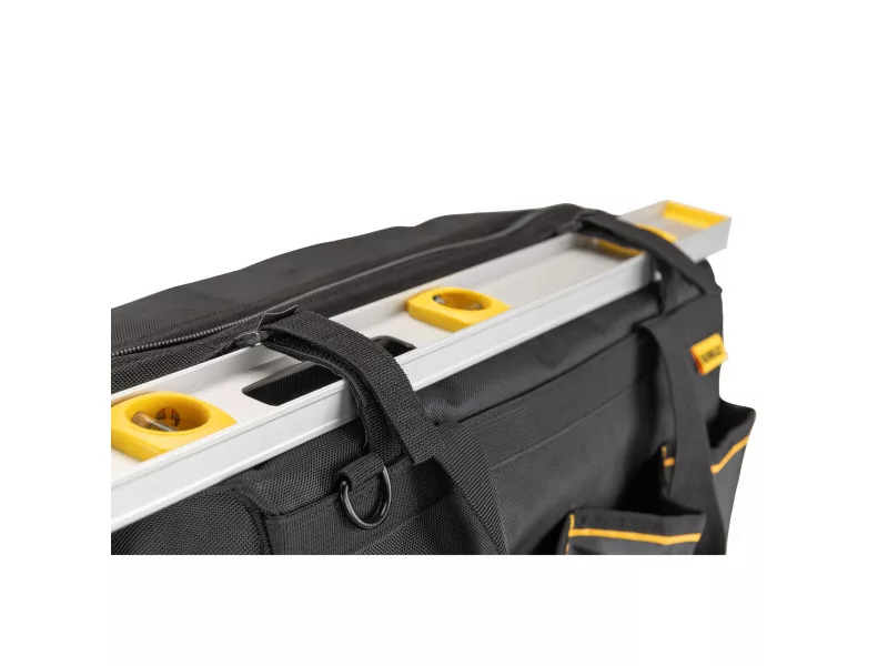 Die DEWALT DWST60104-1 ist eine 20-Zoll (508 mm) Werkzeugtasche, die für Langlebigkeit und Praktikabilität entworfen wurde. Durch die vollständig öffnende Oberfläche der Tasche ist der Inhalt leicht einsehbar und zugänglich. Das Innendesign ermöglicht einen ungehinderten Zugriff auf die Werkzeuge.