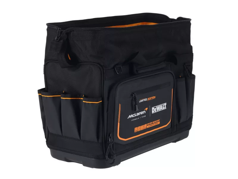 Optimieren Sie die Sichtbarkeit und Zugänglichkeit Ihrer Werkzeuge während der Arbeit mit der DEWALT® 20-Zoll Pro Open Mouth Werkzeugtasche. Die robuste Konstruktion und weiche Aufbewahrungslösung mit IP54 wasserdichtem Fach schützt die Gegenstände und hält die Werkzeuge griffbereit.
