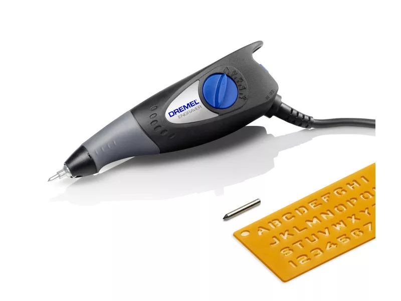 Das Set enthält auch eine Buchstaben- und Ziffernschablone, mit der Sie einfach Buchstaben und Zahlen gravieren können.
