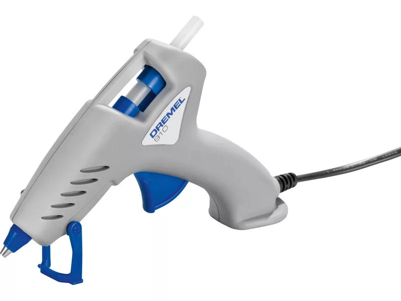 Der Dremel 910 ist eine Hochtemperatur-(165 °C) Klebepistole mit Tropfregelung und Präzisionsspitze. Dank seiner kompakten Größe und hervorragenden Komfortfunktionen (T-Griff, stabiler Stand, ausklappbare Stütze) eignet er sich ideal für schnelle Heimwerkerarbeiten rund ums Haus, z.B. zum Kleben von Keramik, Holz, Kunststoffen, Glas usw.