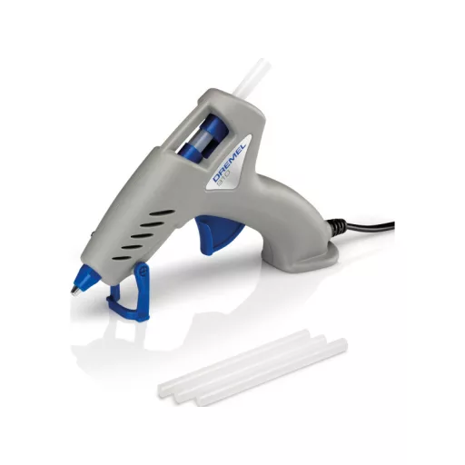 Der Dremel 940 ist eine Hochtemperatur-Klebepistole (195 °C) mit Präzisionsspitze und Tropfregler. Mit seinem abnehmbaren Kabel kann der 940 für bis zu 5 Minuten überall ohne Netzspannung verwendet werden. Dank seiner hervorragenden Komfortfunktionen (T-Griff, stabiler Standfuß, klappbarer Stützfuß) und auswechselbarer Spitze ist er ideal für leichte Heimwerkerarbeiten rund um das Haus, wie zum Beispiel Möbelreparatur, Holz- und Keramikverklebungen.