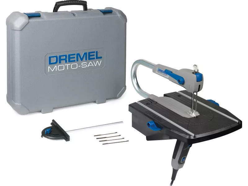 Die Dremel Moto-Saw ist eine kompakte und benutzerfreundliche Laubsäge für detaillierte Schnitte in verschiedenen Materialien. Mit einer Auswahl an verschiedenen Klingen ist die Dremel Moto-Saw Laubsäge für eine Vielzahl von Materialien geeignet. Durch den abnehmbaren Sägerahmen kann sie nicht nur auf einem Ständer, sondern auch freihändig und überall verwendet werden. Diese benutzerfreundliche Laubsäge ist nicht nur einfach zu lagern und zu bedienen, sondern auch einfach zu handhaben. Die Dremel Moto-Saw ist die benutzerfreundlichste Laubsäge.