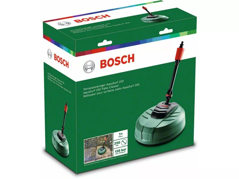 Der AquaSurf 250 Terrassenreiniger wurde für die schnelle Reinigung kleiner bis mittelgroßer Auffahrten und Terrassen entwickelt. Er gleitet mühelos über den Boden und entfernt Algen, Flechten und Moos in einem Augenblick. Mit einem Durchmesser von 250 mm ist er 20% größer als das Vorgängermodell und kann pro Minute einen Quadratmeter reinigen – für effiziente und zeitsparende Ergebnisse. Die Bürstenkante verhindert Wasserspritzer, so dass die Umgebung trocken bleibt. Er bewegt sich leicht auf Stein, Ziegel und Holzböden für eine effektive Reinigung. Der Terrassenreiniger lässt sich leicht zusammenbauen und das Ergebnis ist in Sekundenschnelle sichtbar.