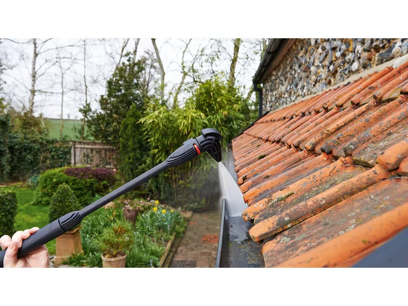 Die 90°-Düse beseitigt Verschmutzungen in schwer zugänglichen Radkästen und Regenrinnen