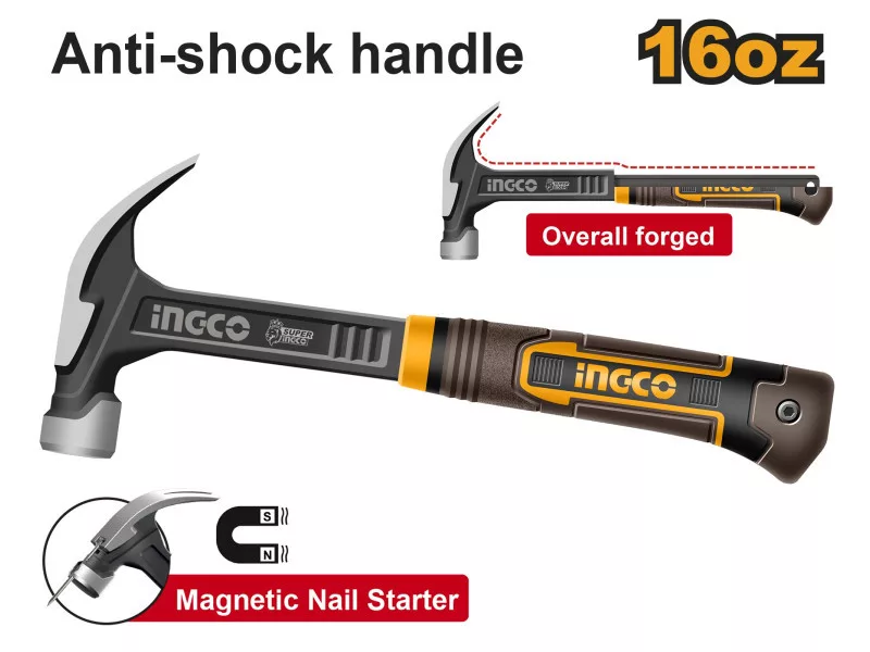 Der Hammerstiel ist mit weichem, rutschfestem Gummi und TPR-Material überzogen, das hervorragenden Komfort und einen starken Griff bietet, während die glasfaserverstärkte Struktur Vibrationen absorbiert, um die Ermüdung zu reduzieren und die Arbeit über längere Zeiträume angenehmer zu gestalten.