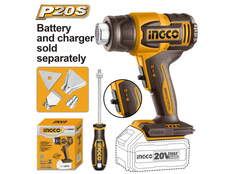 INGCO Akku-Heißluftpistole 550°C 20 V (ohne Akku und Ladegerät)