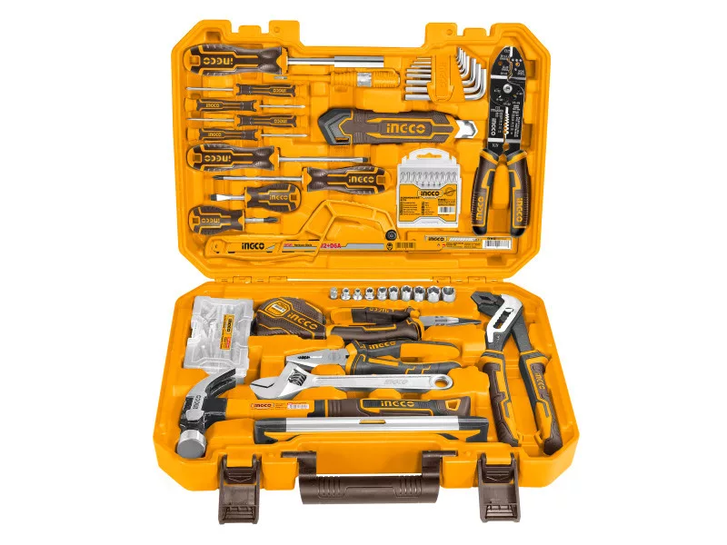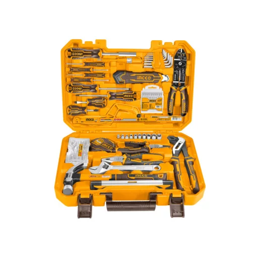 Das Set kommt in einer robusten Kunststoffbox, die für einfache Lagerung und Transport sorgt. Die Box ist gut organisiert und bietet einfachen Zugang zu den verschiedenen Werkzeugen.