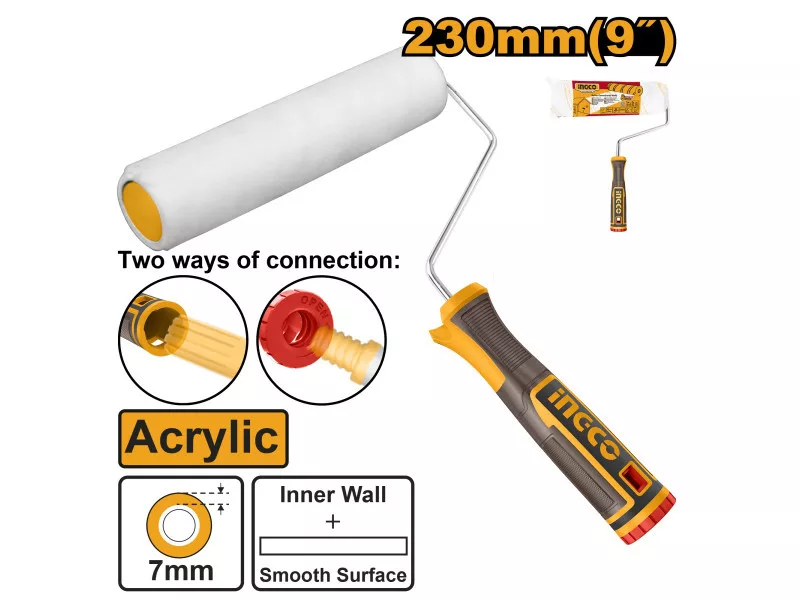 INGCO Acryl-Malerrolle mit Griff 230 x 7 x 6 mm, weicher Griff