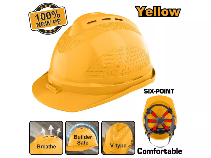 PE-Helmschale mit Belüftungsöffnungen, inklusive Kinnriemen, Bandfutter