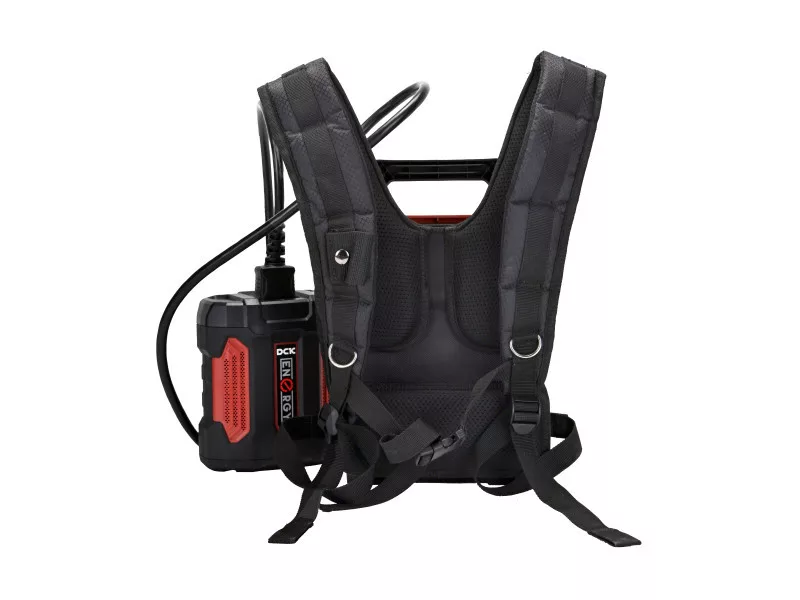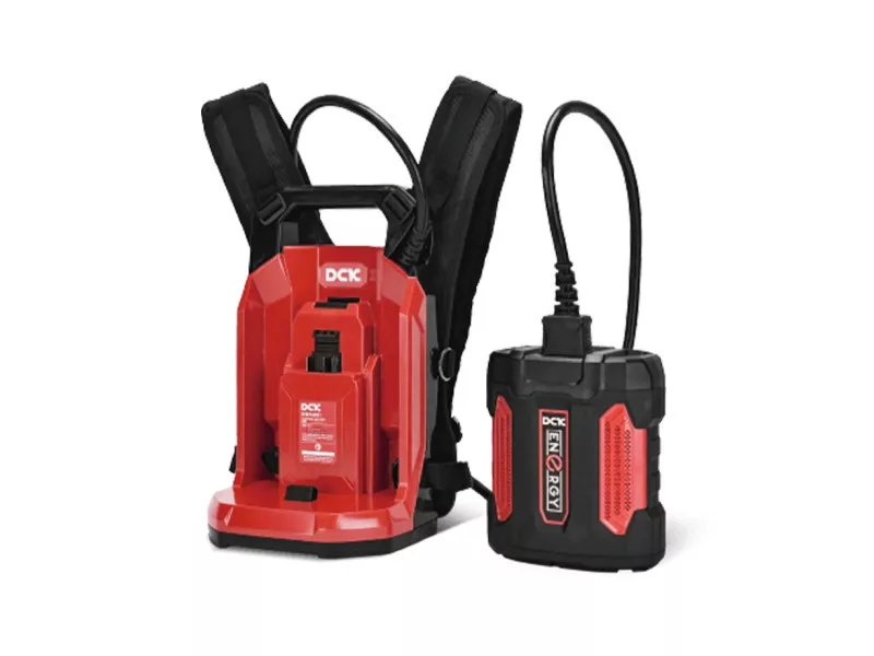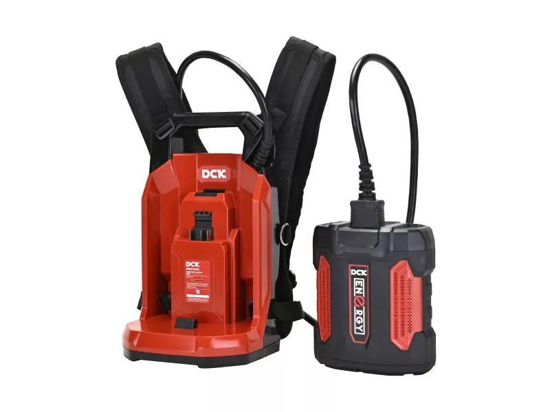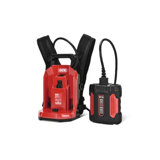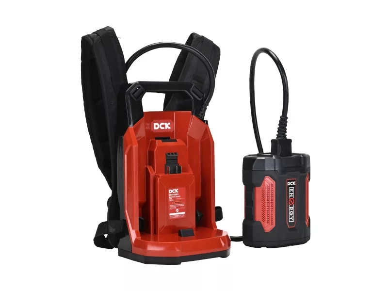 A DCK Backpack Battery Link egy nagy kapacitású, ergonomikus akkumulátoros hátizsákos rendszer, amely hosszú üzemidőt és állandó energiaterhelést biztosít a 58V-os DCK kerti gépek számára. Kifejezetten professzionális használatra tervezve, jelentősen csökkenti az egyes szerszámokon lévő súlyt, növeli a munkavégzés kényelmét és minimalizálja a fáradtságot nagy területek gondozása során.