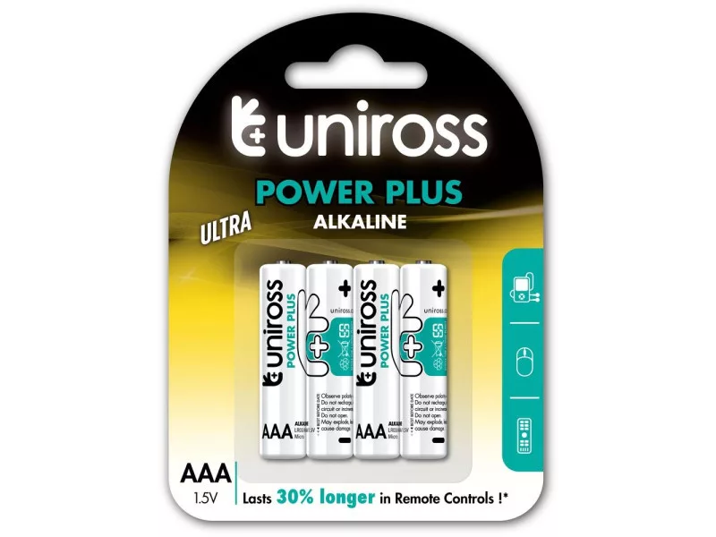Die UNIROSS Power Plus Familie bietet robuste, auslaufsichere Batterien für den täglichen Gebrauch.