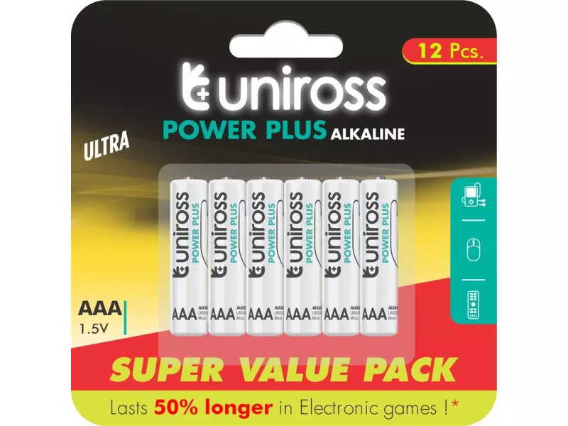 UNIROSS VALUE AAA/Micro langlebige Alkalibatterie 1,5 V (12 Stück)