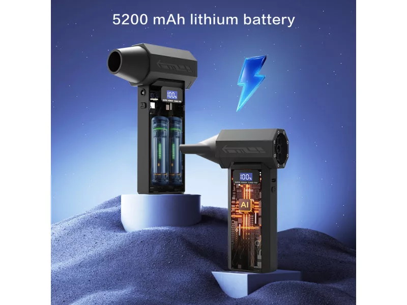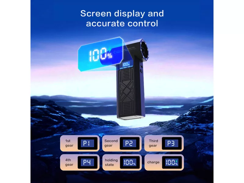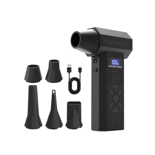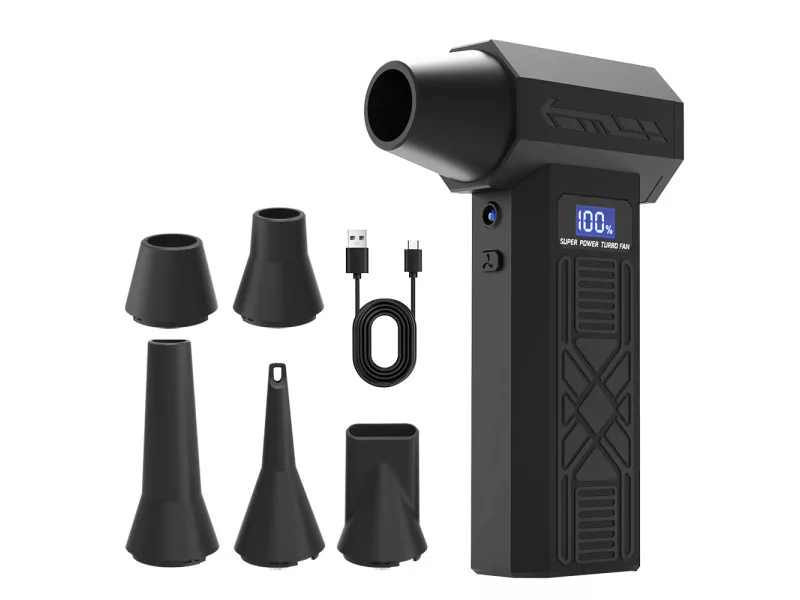 Vezeték nélküli mini turbó fúvóka sokféle otthoni és munkahelyi felhasználásra. Kézreálló, turbóventilátorral hajtva, amely akár 120000 fordulat/perc sebességre gyorsul fel a legmagasabb fokozaton. Az előállított légáram akár 180 gramm súlyú konyhai mérleget is megterheli.