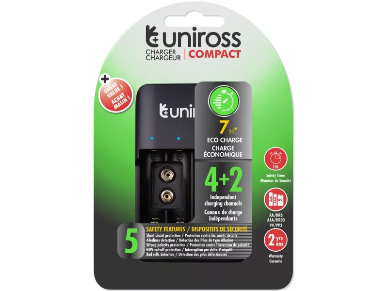 Ez a sokoldalú akkumulátortöltő korszerű Nikkel-Metal Hydrid (NiMH) technológiával lett tervezve, így széles körű akkumulátor-méretekkel kompatibilis, beleértve az AA, AAA és 9 V Block akkumulátorokat is.