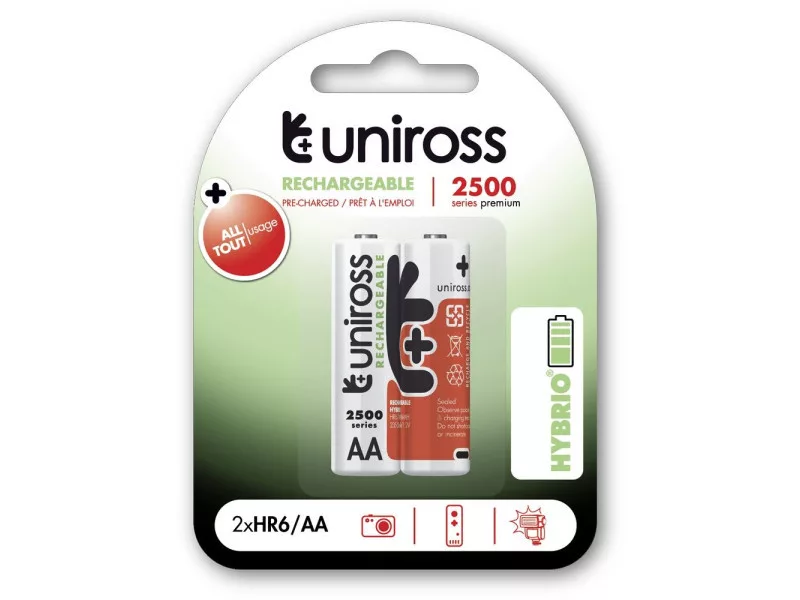 Die wiederaufladbaren Akkus von Uniross übertreffen ihre Alkali-Konkurrenten, da sie während 80% ihres Entladungszyklus eine gleichmäßige Spannung liefern.