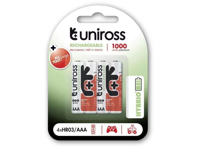 Die wiederaufladbaren Uniross Akkus überperformen ihre Alkali-Konkurrenten, da sie in 80% ihres Entladungszyklus eine konstante Spannung liefern.