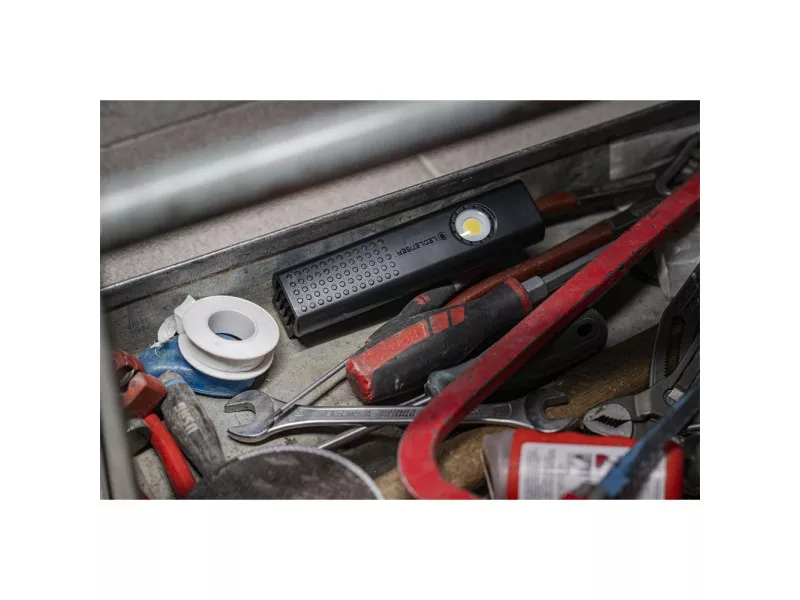 Robust, zuverlässig, stark: Die Ledlenser W5R Work ist ein unverzichtbares Zubehör in der Werkzeugkiste von Industriearbeitern. Der ausgezeichnete Ledlenser Lichtstrahl bietet präzise Beleuchtung auch auf größeren Arbeitsflächen – ob weitläufig oder selektiv durch die Spot-LED im Lampenkopf. Dank des im Standfuß integrierten Magnets und Hakens kann die Arbeitsleuchte jederzeit flexibel platziert und ausgerichtet werden. Der leistungsstarke Akku kann schnell und einfach über USB-C aufgeladen und bei Bedarf ausgetauscht werden. Weitere clevere Funktionen sind die Metallschraube zum Anziehen des faltbaren Ständers sowie die geschliffene Oberfläche für einen starken Griff und die praktische Transportverriegelung.