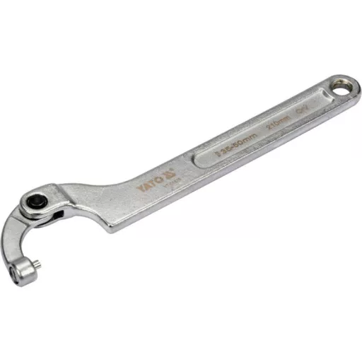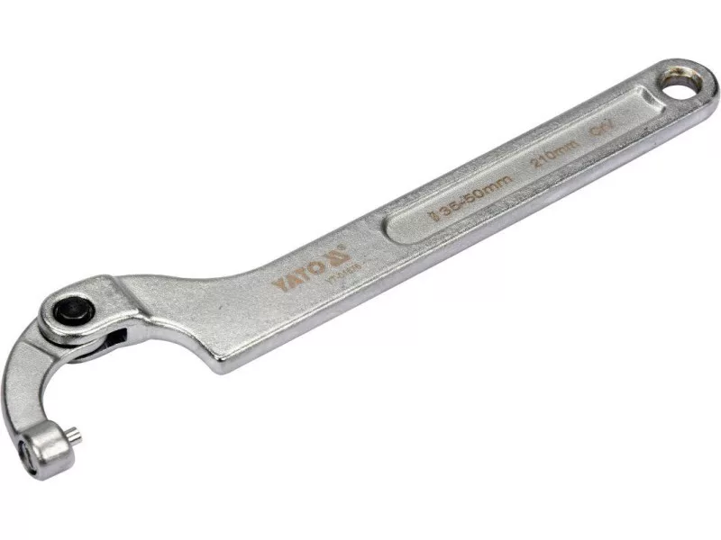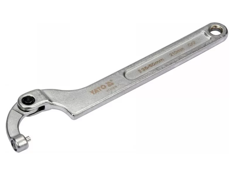 YATO YT-01676 brand hook wrench with round bolt, articulated YT-01676.Made of durable CrV chrome vanadium steel. Matte chrome finish on the surface of the wrench. Designed for servicing flanges, rings, and bearings.