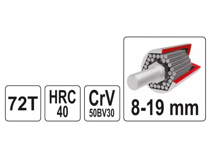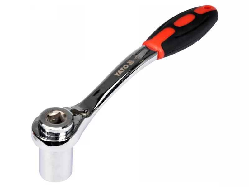 The key with the Yato YT-02400 universal attachment. The key with a bent profile, with a universal attachment with a diameter of 8-19 mm. Designed to unscrew various types of screws. • Made of high quality CRV steel, resistant to mechanical damage • hardness: 40 HRC • right/left rotation switch • ergonomic, rubberized plastic handle is provided by a stable grip