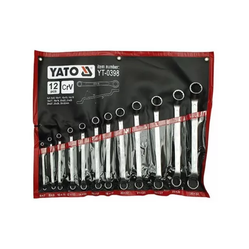 Introducing the YT-0398 bent ring spanner set - the perfect tool for every professional. Ensuring reliability and comfort in the toughest conditions.