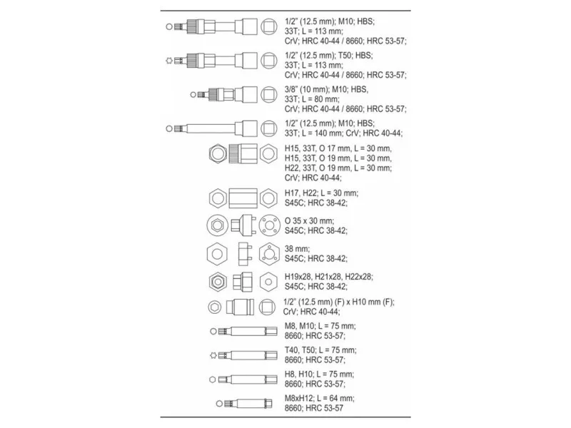 The YT-04211 alternator key set is a comprehensive solution for any workshop. Made of the highest quality steel, it ensures long-term use and wide compatibility.