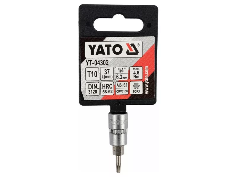 Professional Torx pushes, 1/4 "cap size, t10 size. Chrome cap made of CRV6150 steel, aisi S2 steel and nickel -covered. An irreplaceable tool in a car or mechanical workshop.