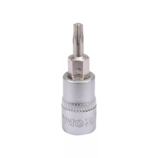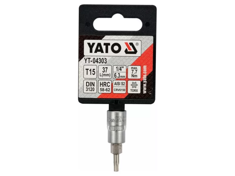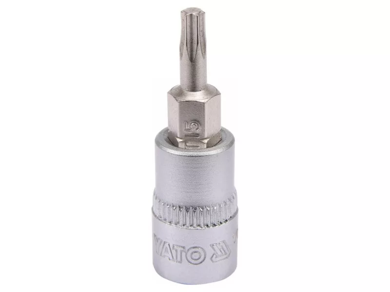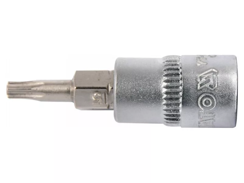Professional Torx thoroughbage key, 1/4 "attachment, T15 size. Chrome cap made of CRV6150 steel, Aisi S2 steel mandrel and covered with a layer of nickel. An irreplaceable tool in a car or mechanical workshop.