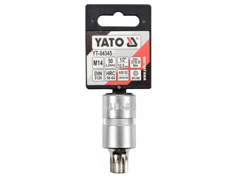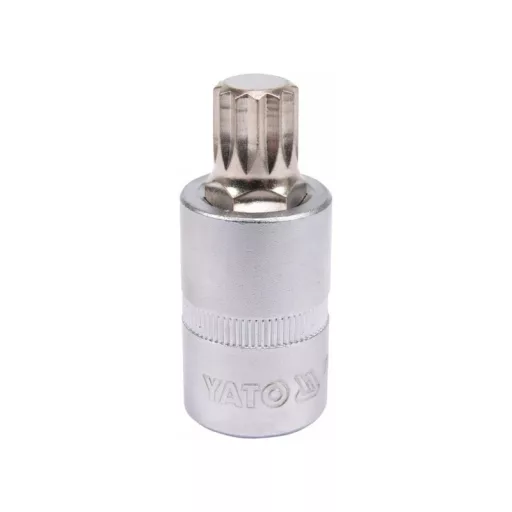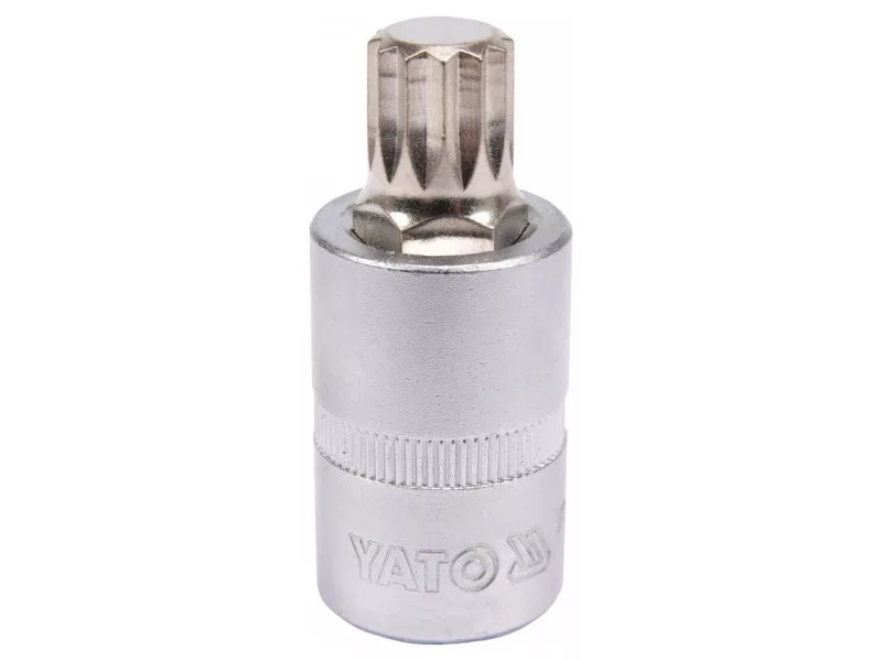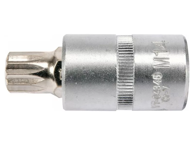 Professional SPLINE SPLINE, SIZE SIZE 1/2 ", MINE SIME M14. Chrome cap is made of CRV6150 steel, Aisi S2 steel mandrel and covered with a layer of nickel. An irreplaceable tool in a car or mechanical workshop.