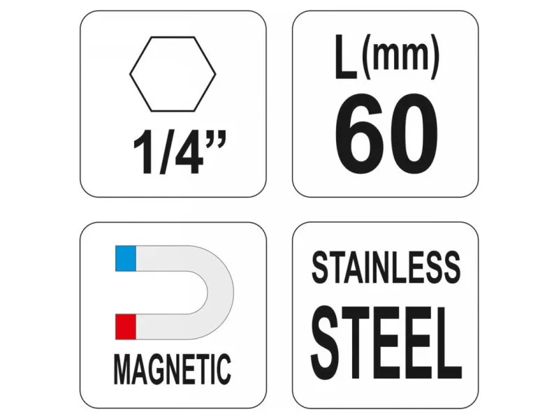 YATO Bithalter 60 mm 1/4" magnetisch inox YATO Bithalter 60 mm 1/4" magnetisch inox