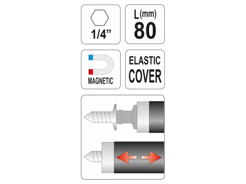 YATO Bithalter 80 mm 1/4" magnetisch (mit flexibler Abdeckung) YATO Bithalter 80 mm 1/4" magnetisch (mit flexibler Abdeckung)