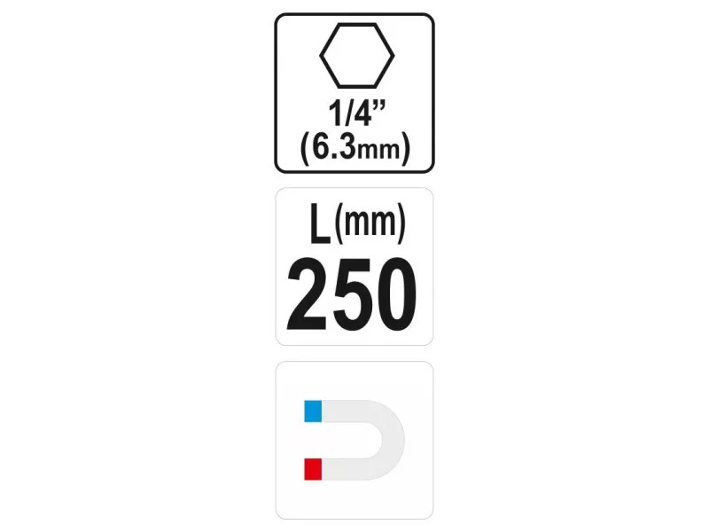 Magnetic bit holder 1/4 x 250mm by Yato YT-04683, made of 40Cr steel. The additional surface has been oxidized.