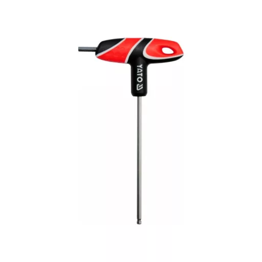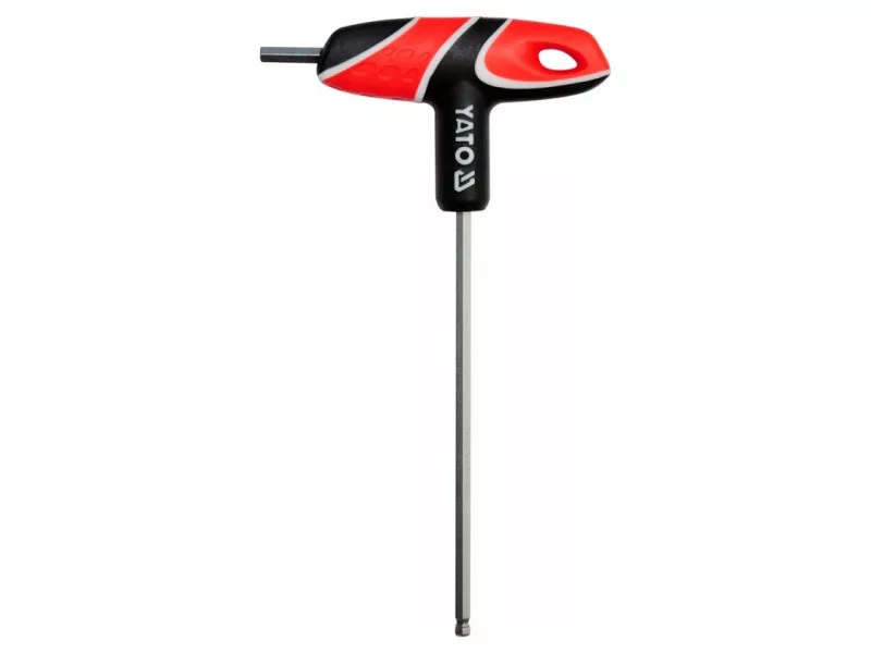 Professional HEX (spherical) pushing key with handle, the size of the stem 5.0mm. A handy and solid plastic handle, while the mandrel is made of S2 steel. An irreplaceable tool in a car or mechanical workshop.